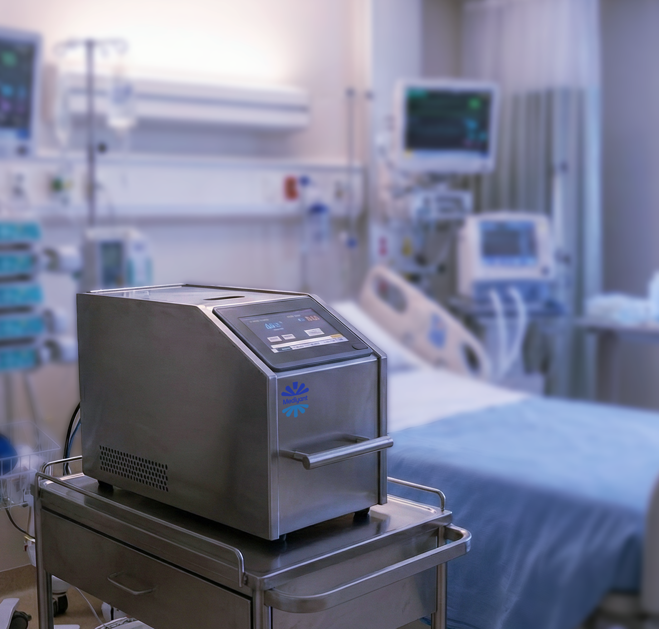The MiNi HIVA is a high-precision, reliable oxygenator water supply system designed to maintain normothermia during Extracorporeal Life Support (ECLS). It ensures accurate temperature regulation by electronically controlling water heating to the set-point temperature.
